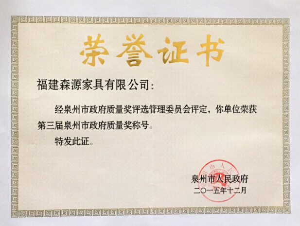 森源家具是泉州企業(yè)的名片走向了世界,泉州質(zhì)量獎(jiǎng)則成為了森源的名片,走向品質(zhì)之路的更深處。